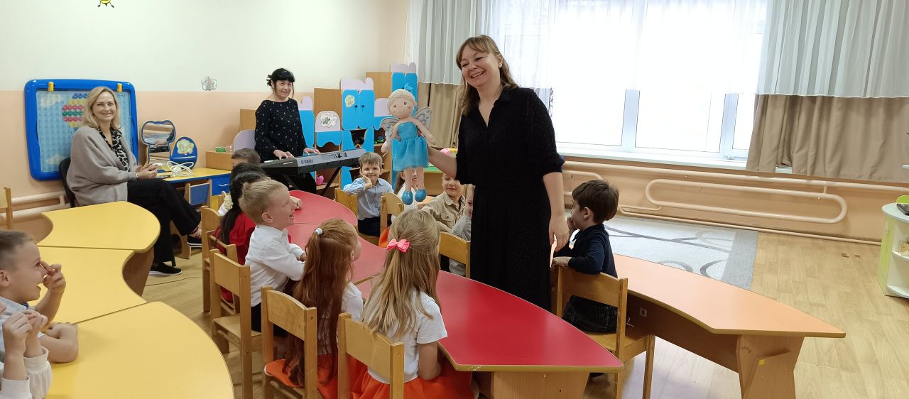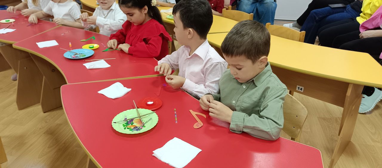 В рамках общесадового проекта "Нам песня строить и жить помогает" в старшей группе "Пчелки" прошло открытое занятие по теме "Соло. Дуэт. Трио" ( "Спасение Феи Музыки") под руководством воспитателя, Пастуховой Н.В. В начале занятия дети получили письмо от Бабы Яги, о том что она похитила Фею музыки и чтобы ее освободить, дети должны были выполнить три задания. Первое задание - отгадывание загадок. второе - игра сыграть вместе с другом нам музыкальном инструменте и третье задание - сделать волшебные бумажные нотки. А кульминацией занятия было песня группы "Трио Пчелки" - "Друзья."